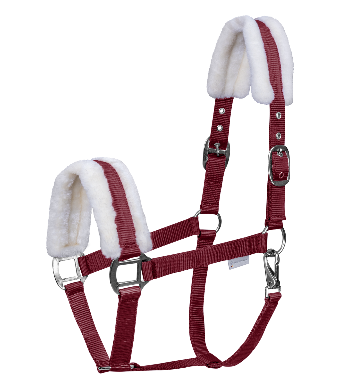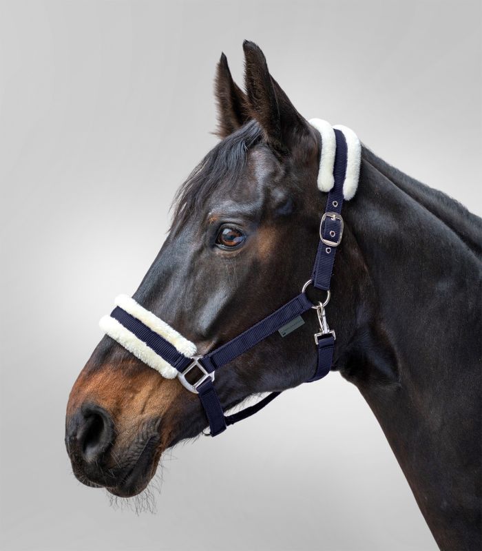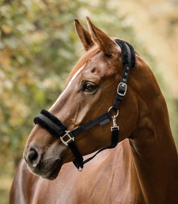 Очень удобный, мягкий и практичный недоуздок. Подложки из плюшевого искусственного меха на затылочном и переносном ремне предотвращают натирание. Регулировка затылочного ремня с двух сторон обеспечивает точную подгонку без перекоса на одну сторону. Подбородный ремень без регулировки.