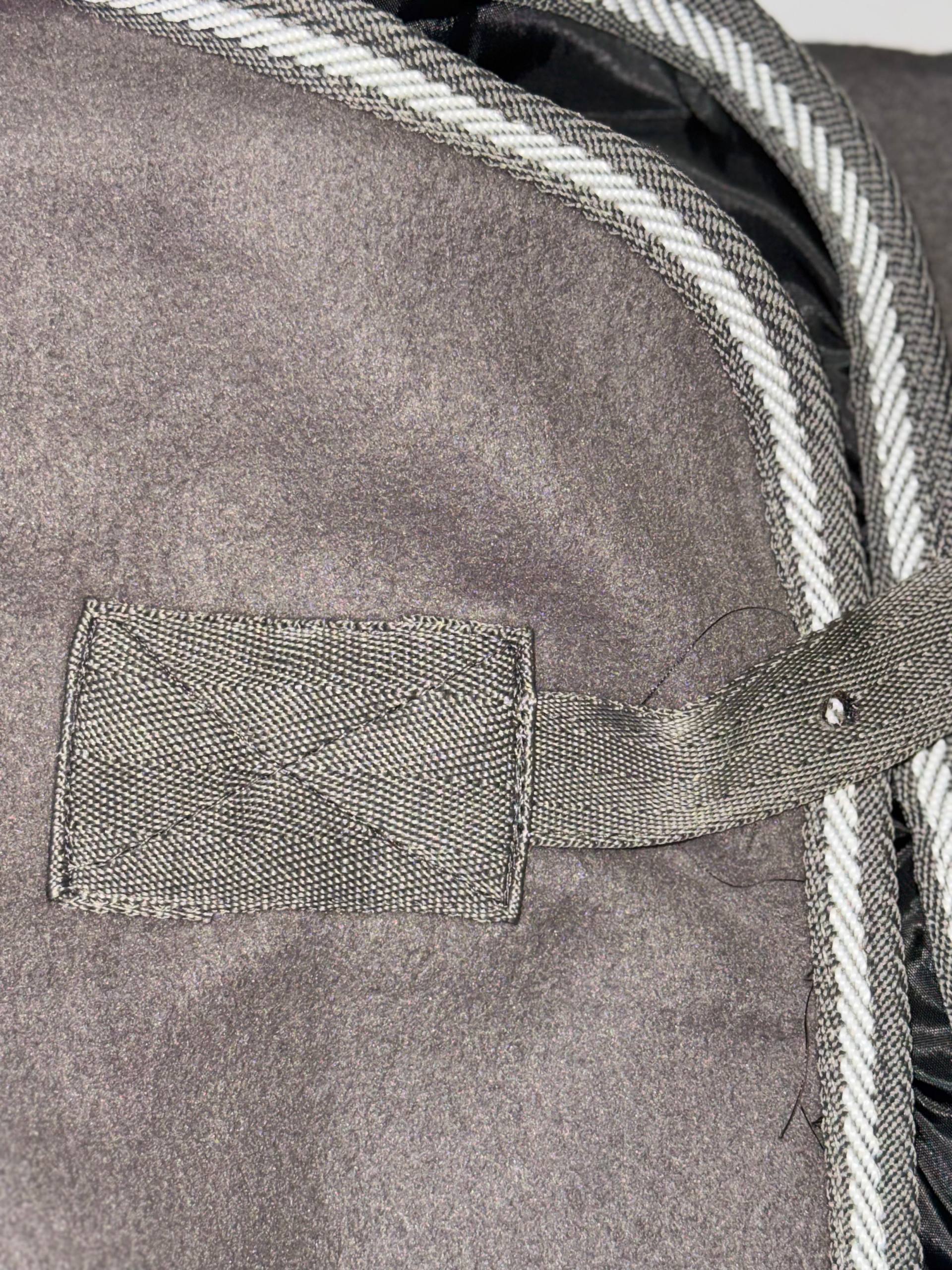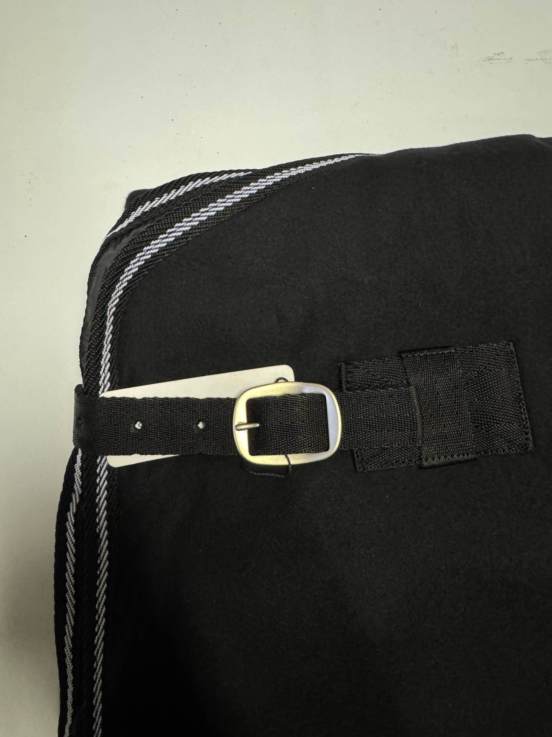 Попона из флиса с перекрестными лямками, простой пряжкой на груди и подхвостным ремешком.