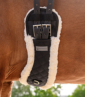 Выездковая подпруга с подложкой из мягкого искусственного меха. Специальная изогнутая форма удобно облегает контуры лошади и предотвращает сползание седла. Идеально адаптируется к движениям лошади и тем самым защищает от натирания и точек давления. Максимальный комфорт при любых движениях. С роликовыми пряжками из нержавеющей стали и кольцом для вспомогательных поводьев в центре. Без эластичных вставок.