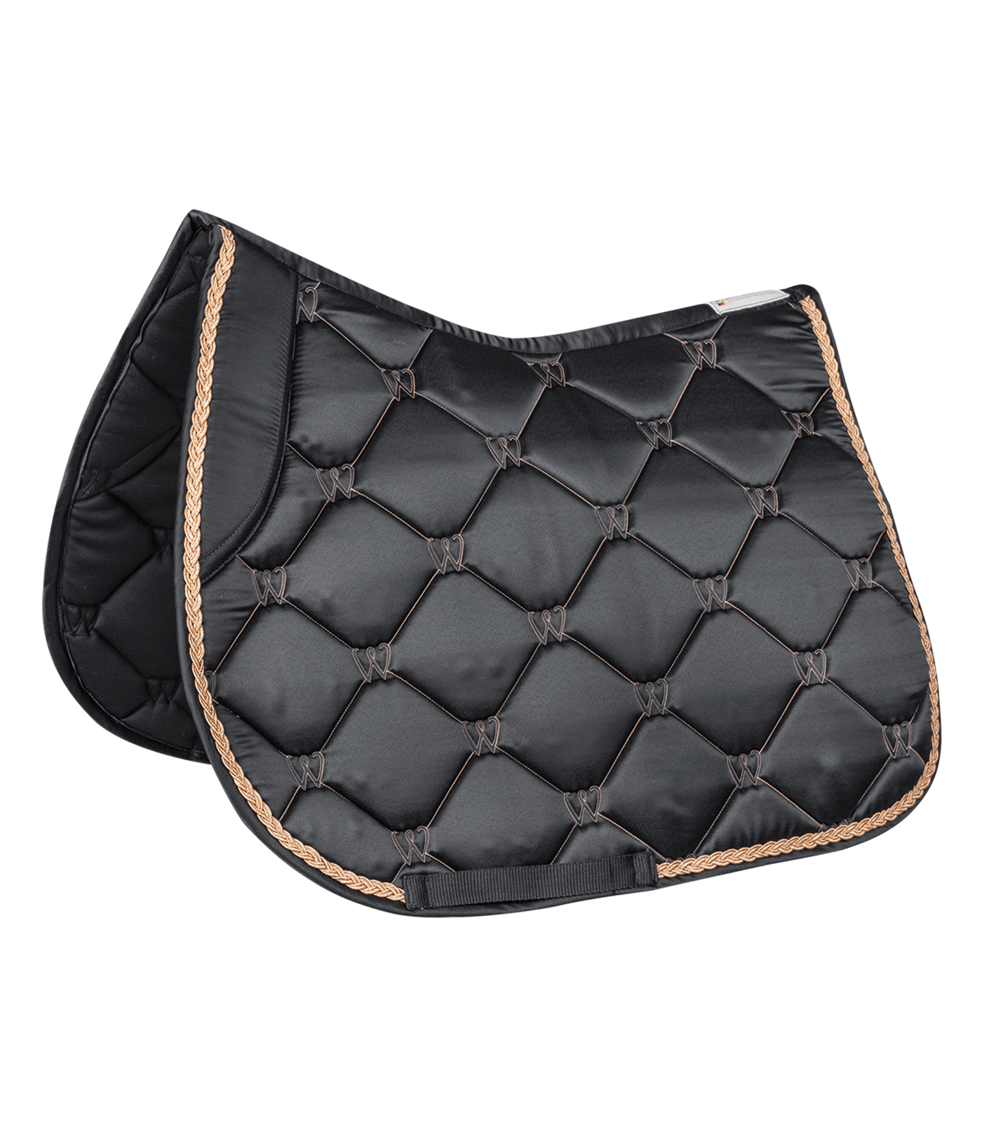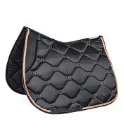 Роскошный анатомической формы вальтрап Валенсия с элегантной необычной прострочкой, шнуром в цвет прострочки и блестящей шелковистой верхней тканью. Вальтрап имеет только нижнюю петлю для подпруги, а вверху утолщение в районе холке, предотвращающее съезжание вальтрапа под седло. Черная сетчатая дышащая и впитывающая подкладка обеспечивает хорошее впитывание пота, набивка 200 г / м² и пена толщиной 10 мм для превосходной компенсации давления и амортизации.
